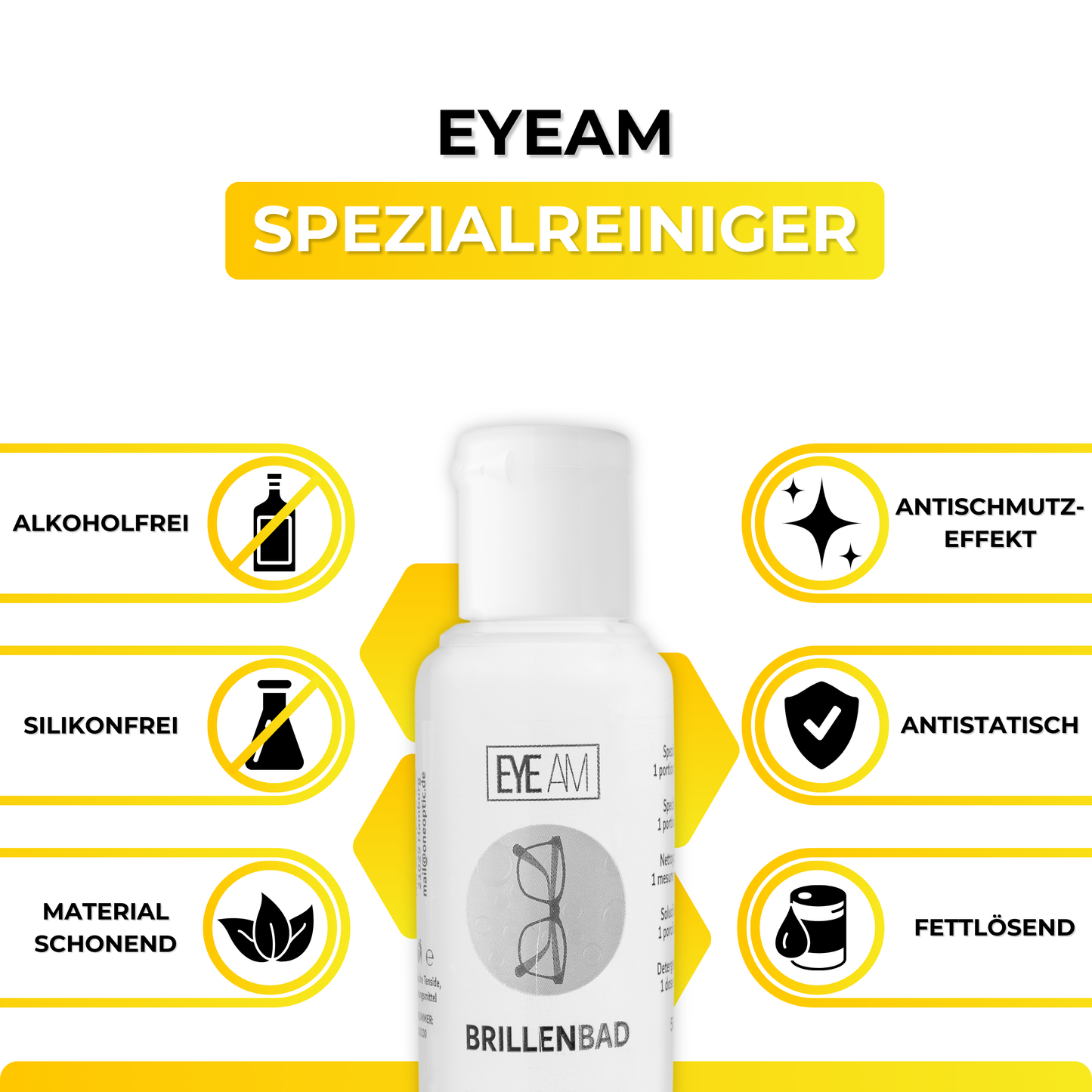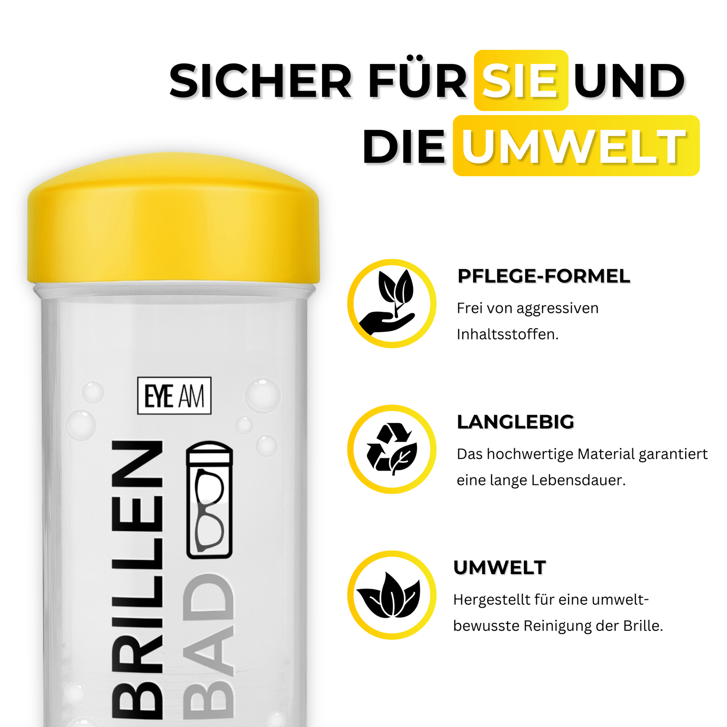 Sparpaket – EyeAm Brillenbad, 50ml Spezialreiniger & Mikrofasertuch (40 x 40 cm) im Set zum Komplettpreis. Perfekt aufeinander abgestimmt für die tägliche Reinigung der Brille.
