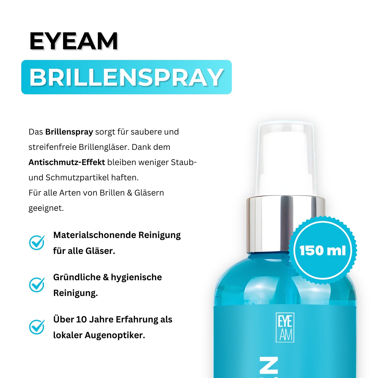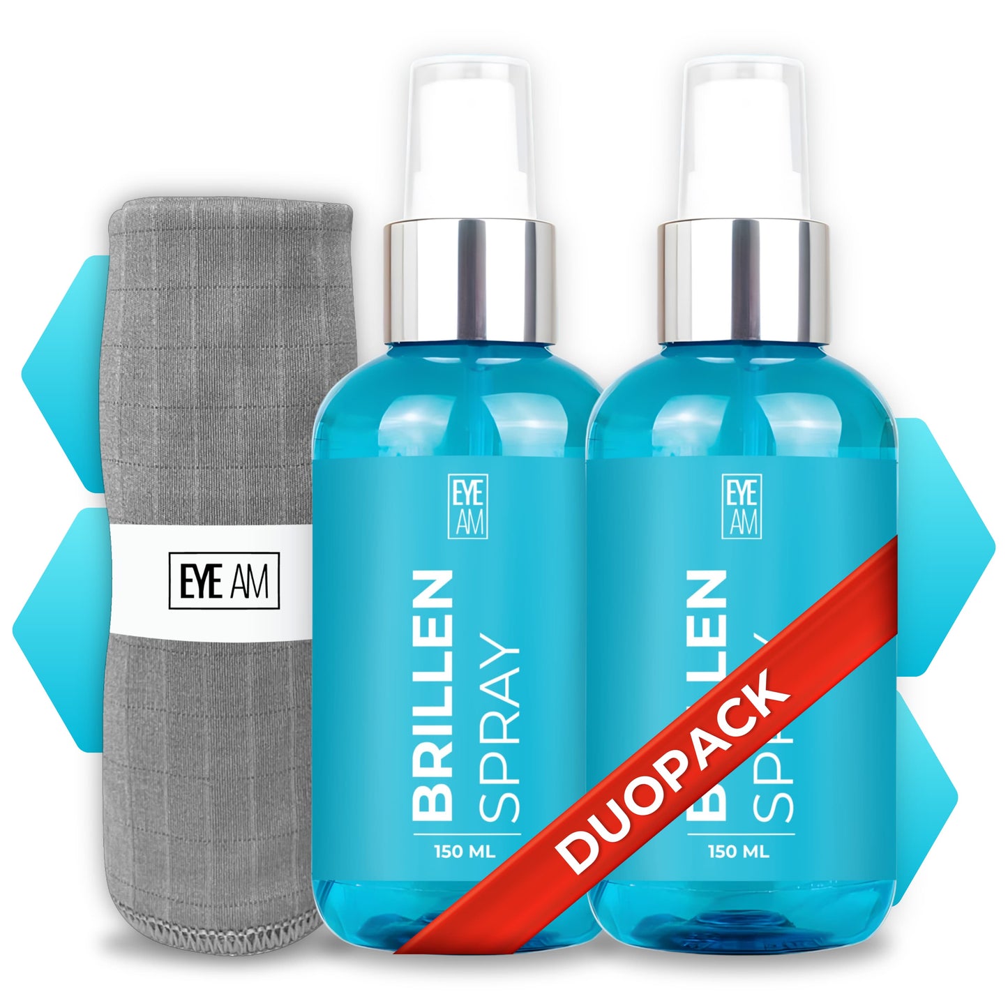 EyeAm Brillenspray 300ml mit Mikrofasertuch